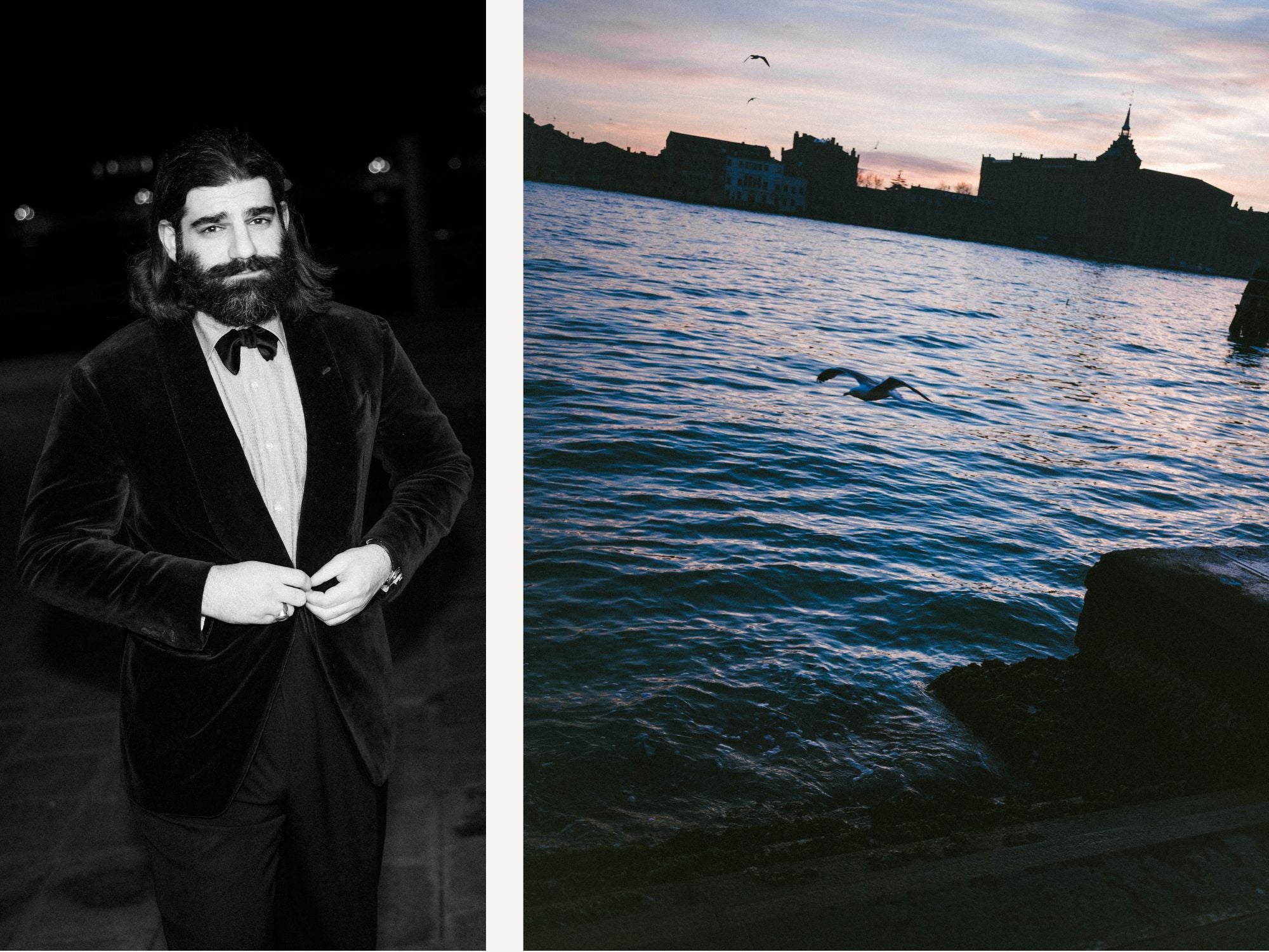 A night in Venice with some of our closest friends feels like the kind of occasion that deserves to be marked properly- which is to say, in black tie. Shot at the beautiful Il Palazzo Experimental, We're showcasing pieces from our formal wear collection; the classic house tuxedo in matte wool-mohair barathea, plush velvet dinner jackets, and shirts both classic and unexpected- crisp white evening shirts alongside chambray, oxford, and poplins in colors that break from tradition. Shop our ready-to-wear black tie options in-store or online, or reach out to Team@JMueser.com to book a custom consultation