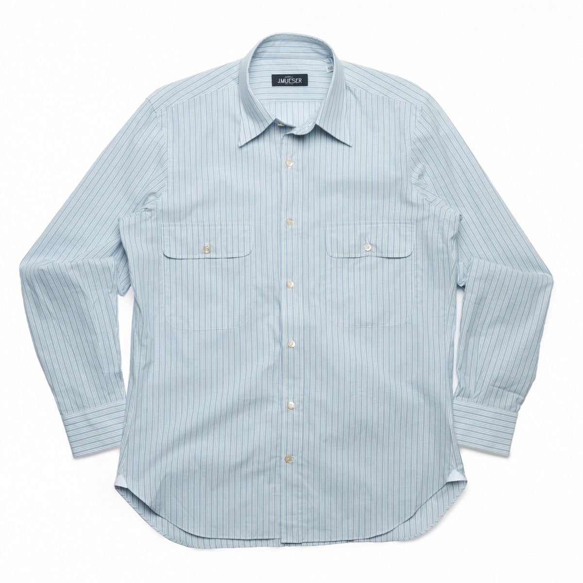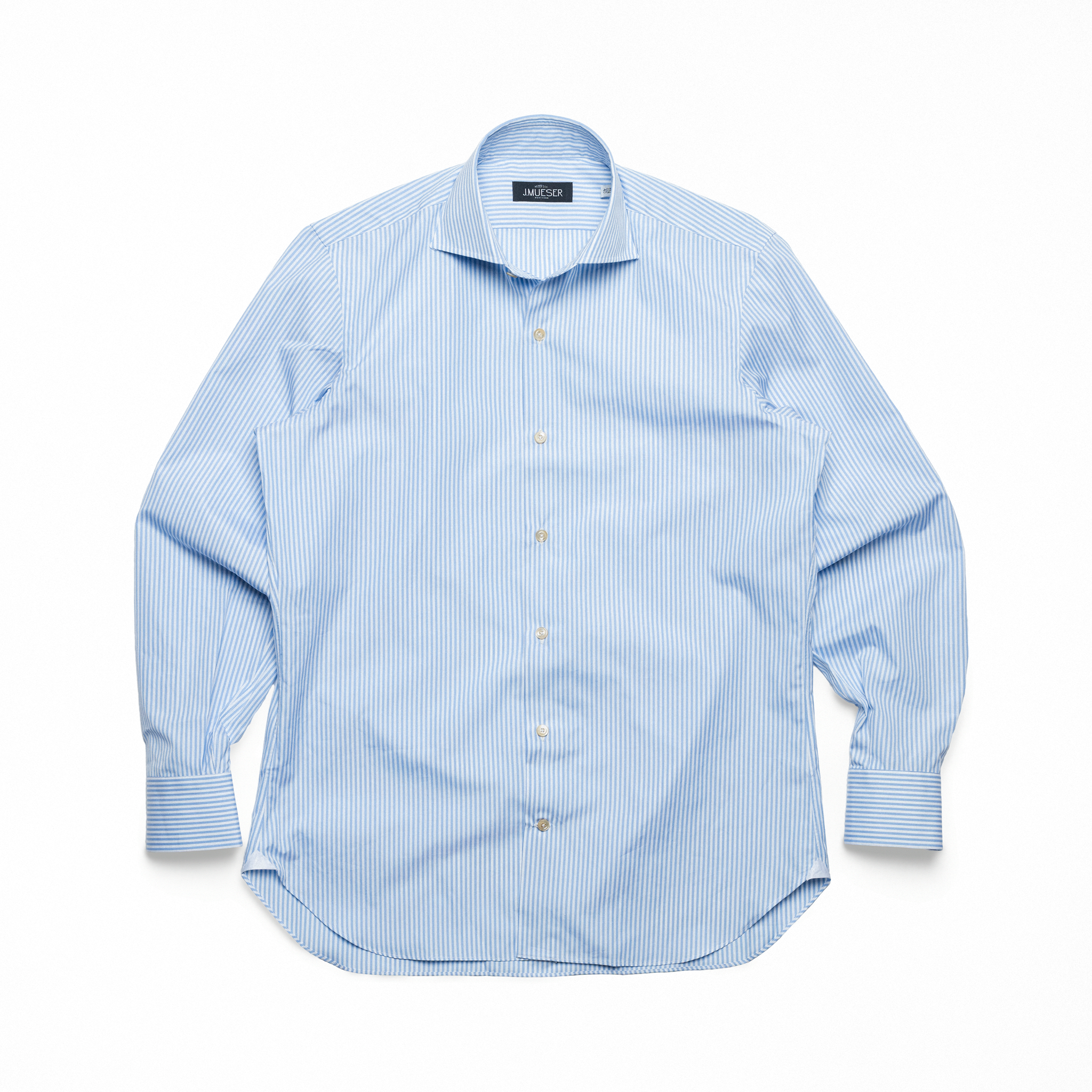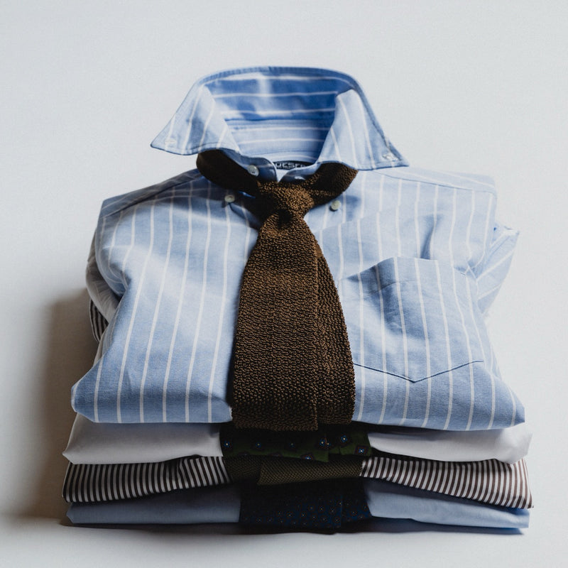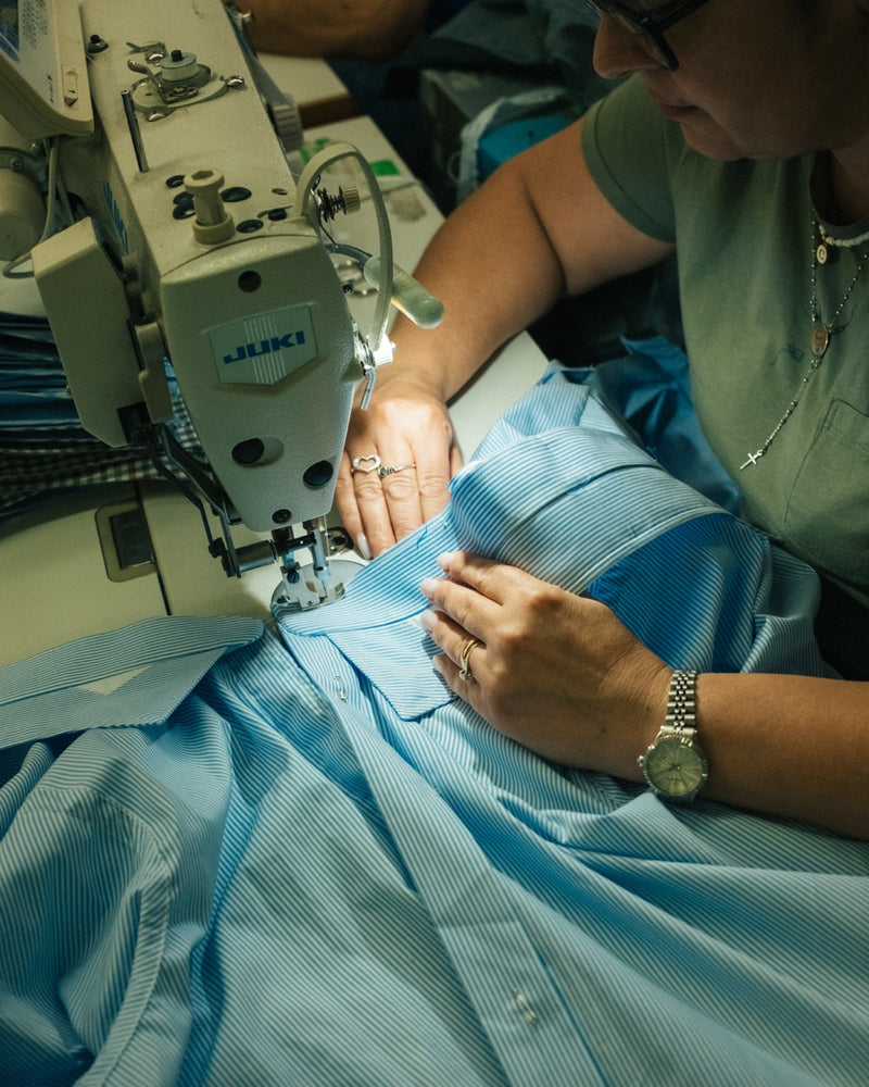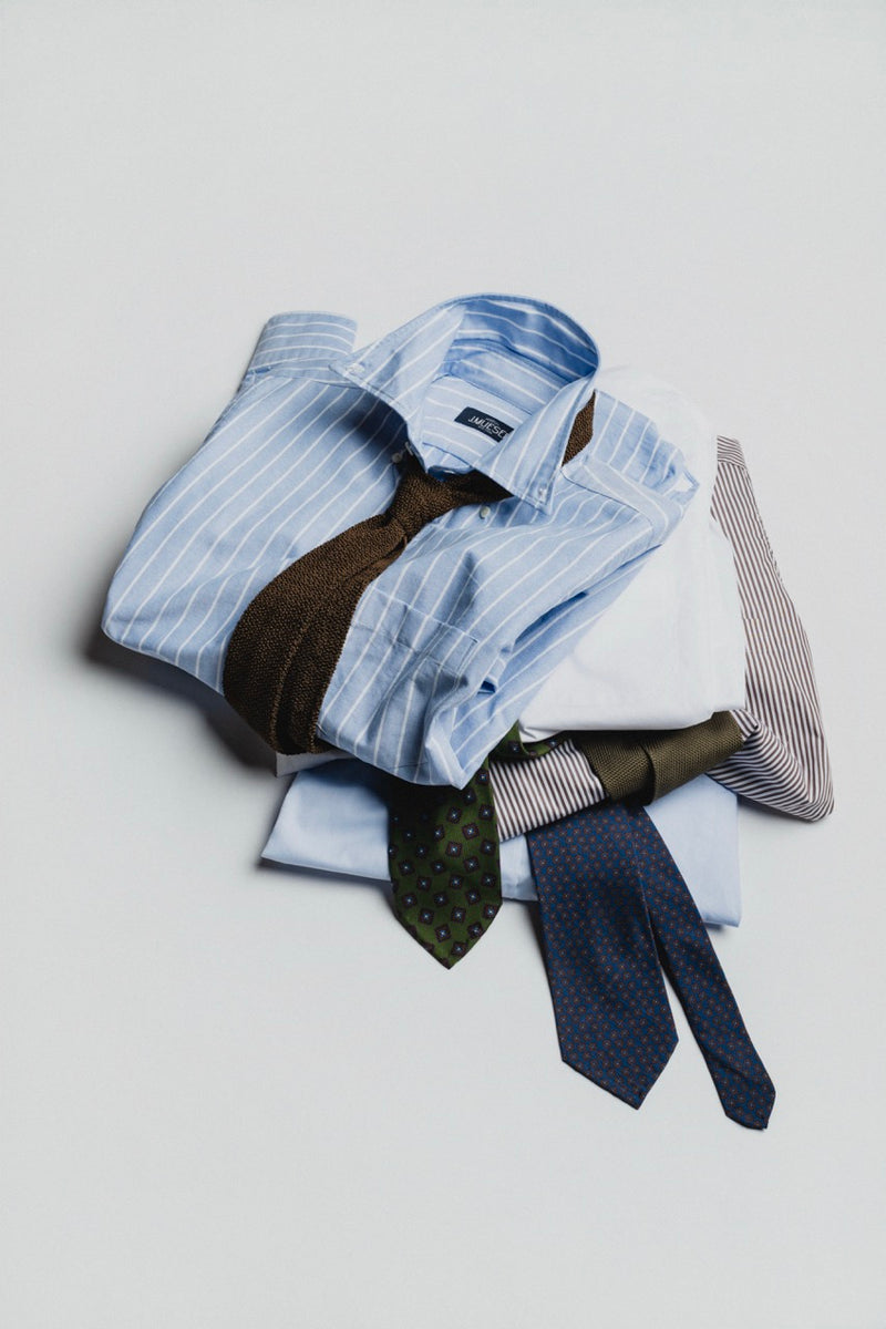 Shirts, simply put- oxfords and poplins and the odd textile that comes along once and won't come again- all made up with classic button-down collars, a wide 70s point, or a clean spread that'll take you somewhere nice. Two-pocket workshirts on one end, dress shirts on the other, and a lot of good ground in between. All of it sewn by hand at a little camiceria in Naples, where the collar, the sleeve, and the yoke are still attached the old way- one at a time,by hand.