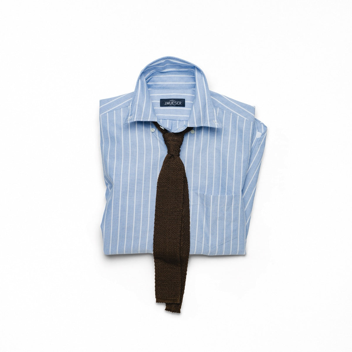 The button-down collar shirt has a long history on the American campus- home to the blazer-and-khakis crowd, but also to the beatniks, the troublemakers, and the ones who were quietly rewriting the rules. Our classic oxford shirt draws from that tradition: a full-rolling button-down collar, split yoke, box pleat, and chest pocket, cut in a sturdy 100% cotton oxford that wears equally well on a Tuesday or a Saturday. The most casual shirt in the J.M. Classics range, and probably the one you'll reach for most.