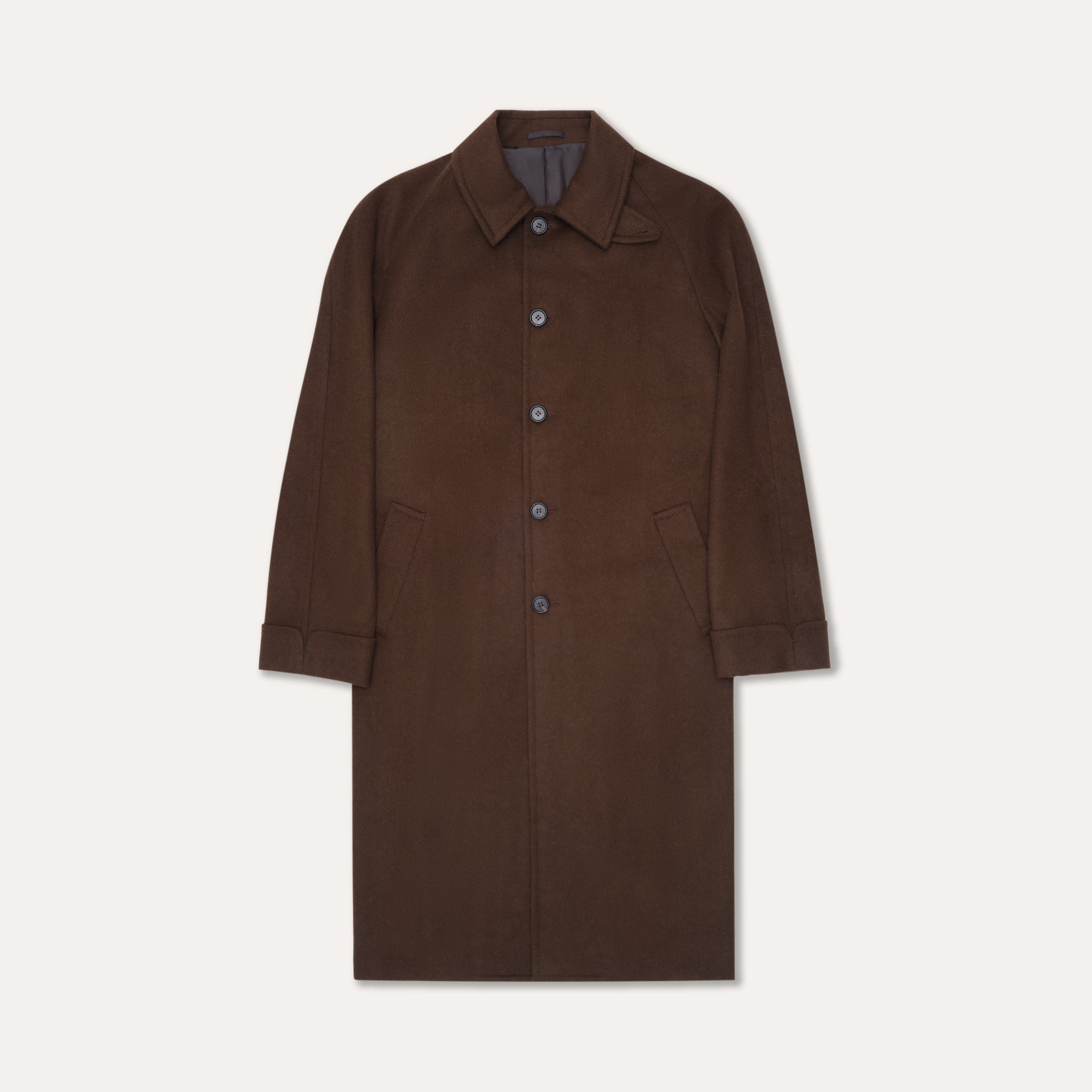 Our Belted Balmacaan features a raglan sleeve, wrap belt, long back vent, detachable throat latch, 5 button front, cocktail cuffs, and slanted welt pockets. Cut from a 19oz wool in a traditional Loden green.
