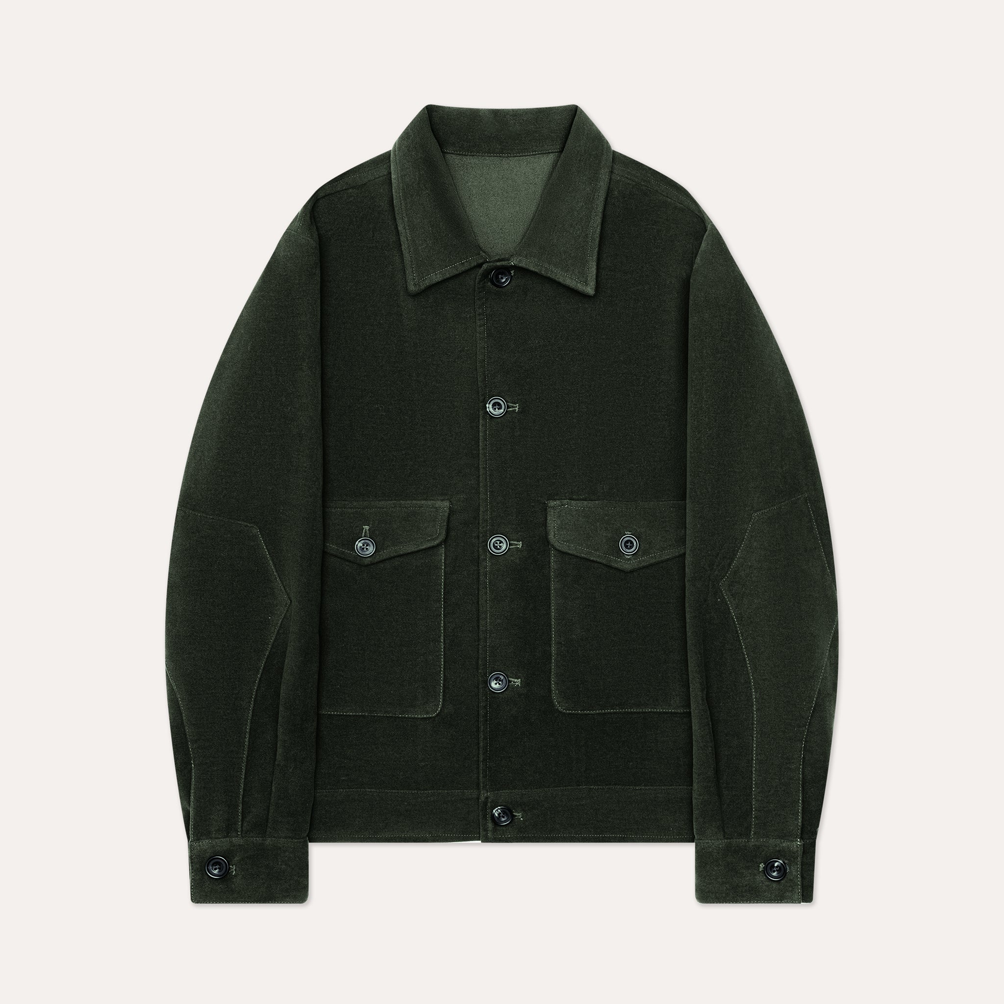The Marfa Jacket, inspired by a 1950s mechanic's station jacket, features two patch-with-flap waist pockets with side entry, adjustable waistband, and one piece sleeves constructed double elbow patches. We think this jacket can be worn over a cashmere roll neck, knit polo, oxford button down, or a t-shirt.