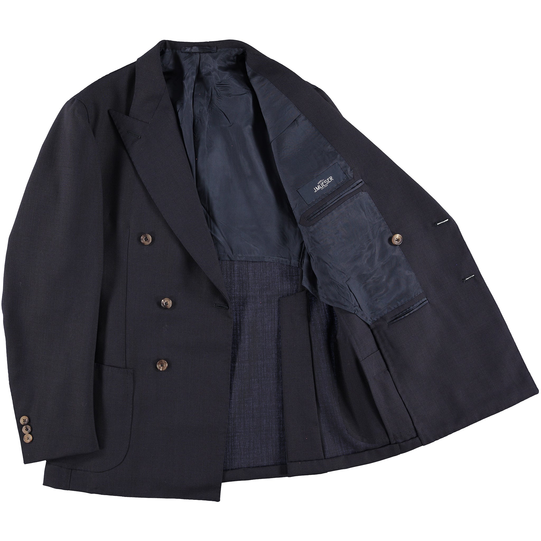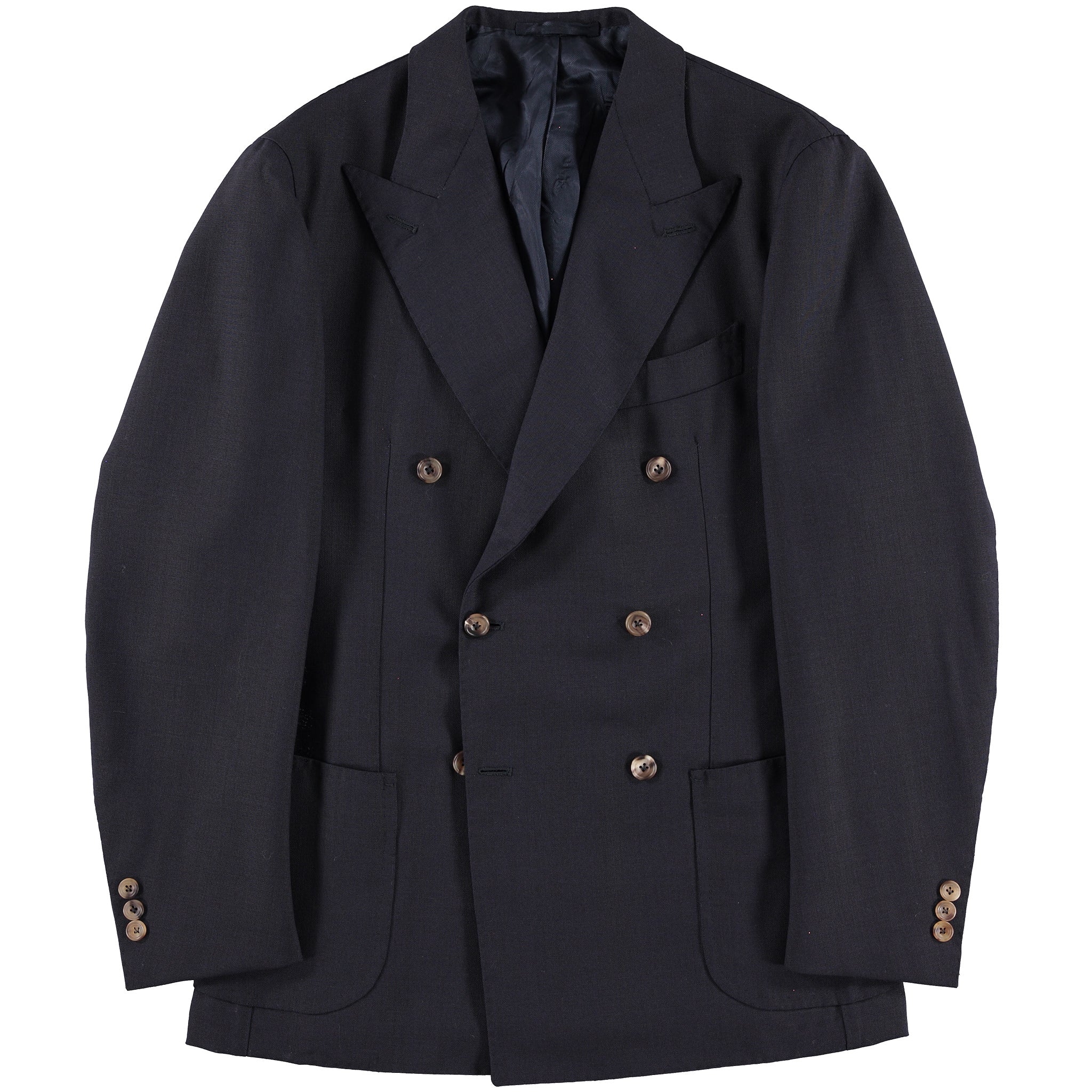 If you only own one jacket- let it be a navy blazer. If you already own said navy blazer, consider a double breasted one. Handcut and handmade at our sartoria in Naples, Italy from a very classic English hopsack, this jacket is perfect for almost any occasion and has just a bit more drama than it's single breasted variant.