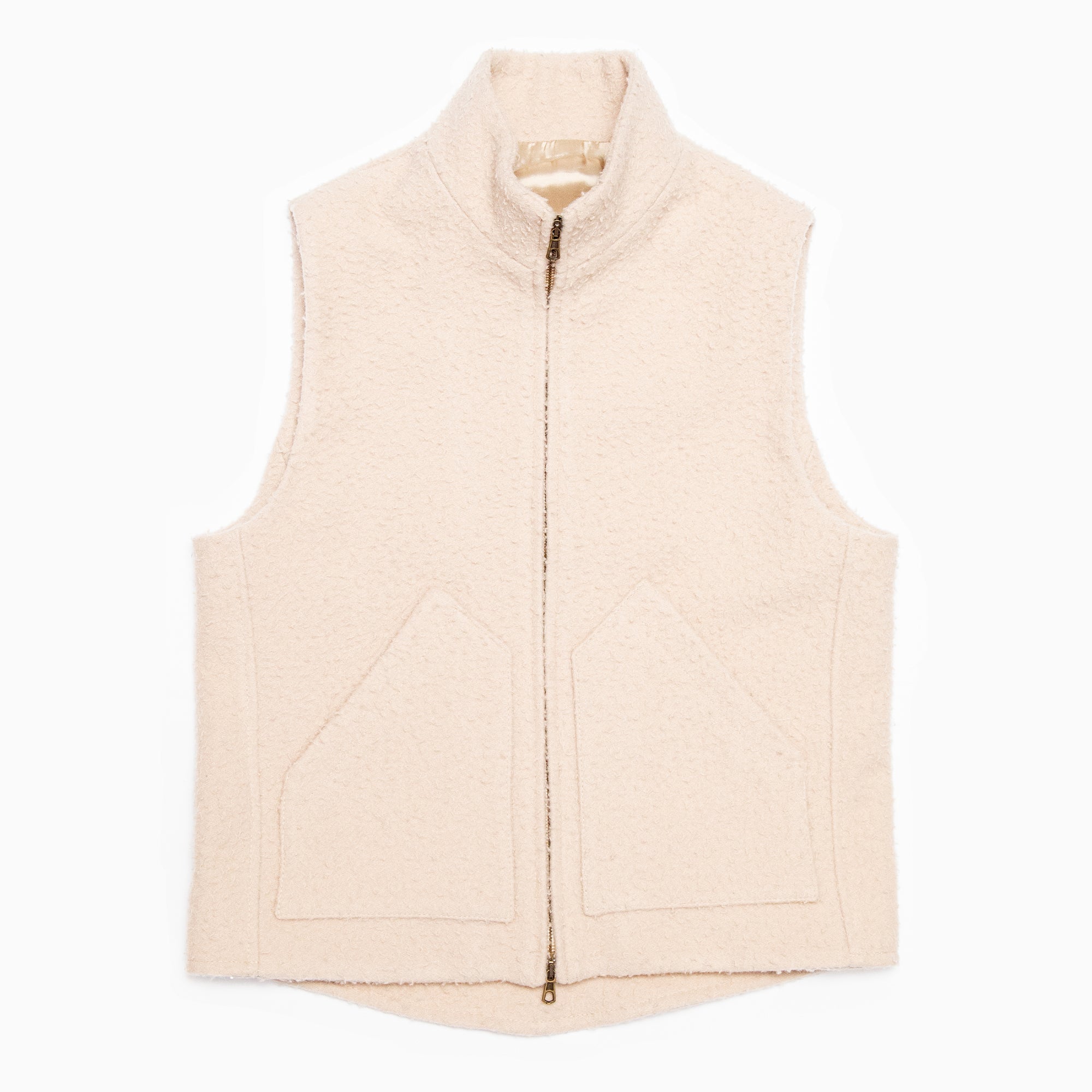 Cut from a warm Casentino wool and featuring two angled pockets at the waist and a two-way zip. We love this piece under a tweed jacket or over a cashmere sweater.