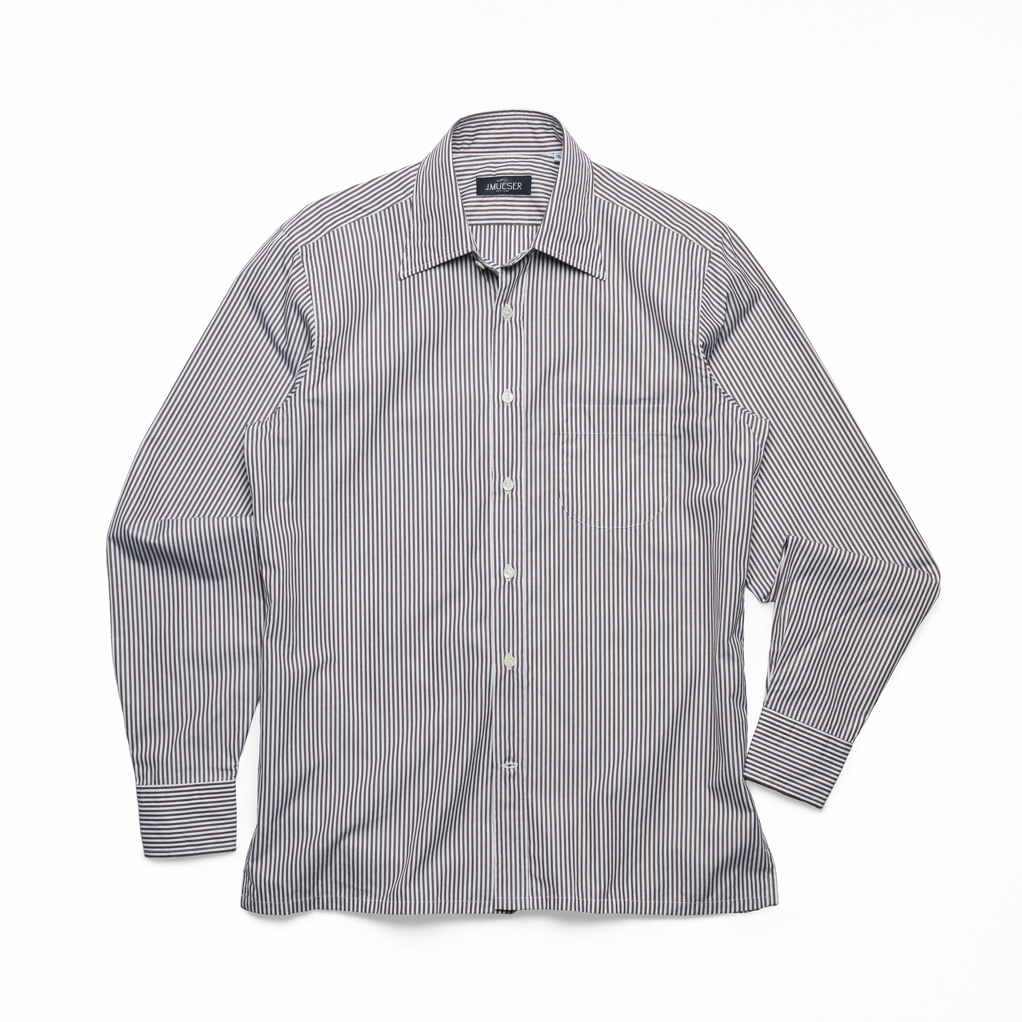 Featuring a barrel cuff, a single chest pocket, and two knife pleats at the yoke, the Carter is available in a range of lightweight cottons in distinct stripes.
