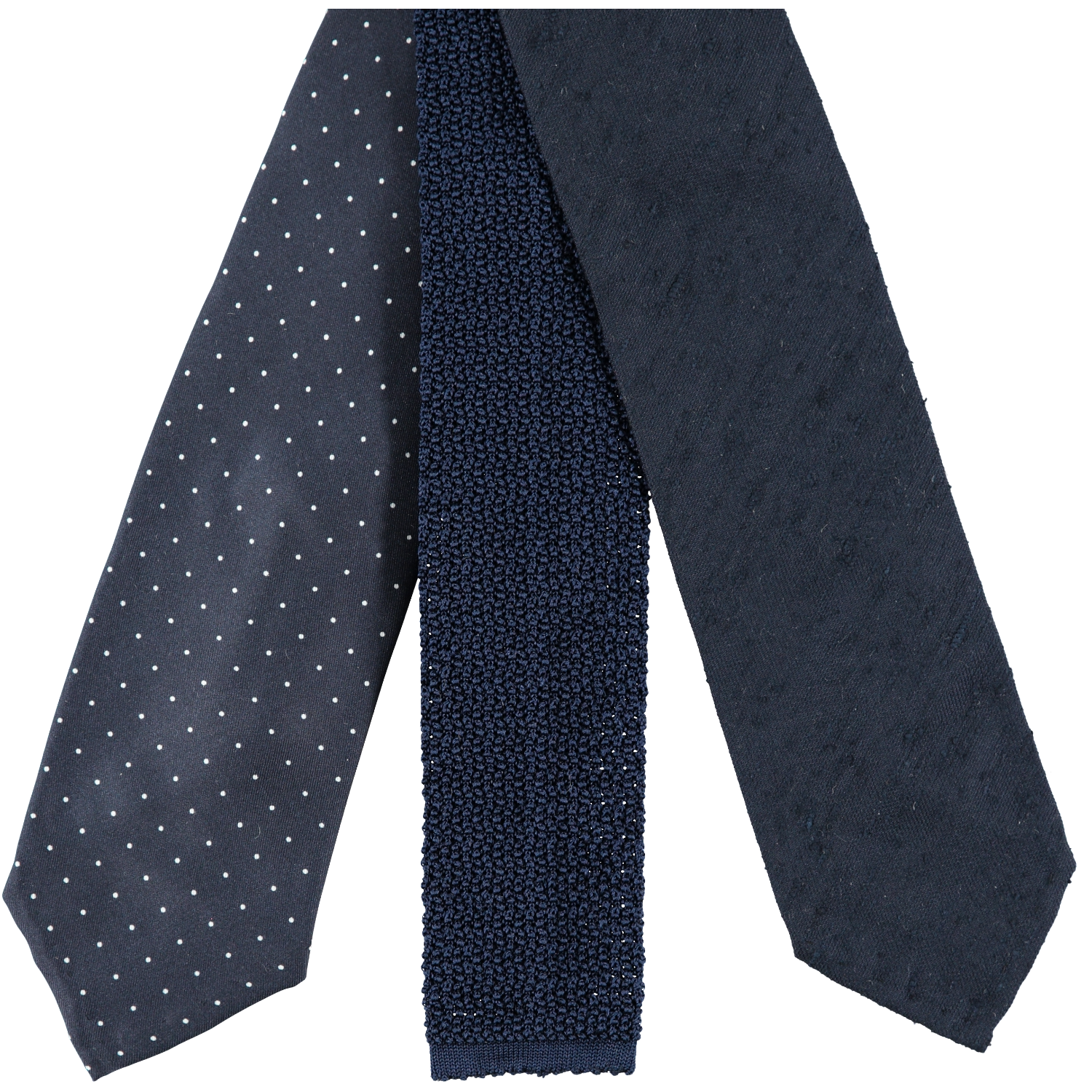 The only three ties one needs! Whether taken on the road as your travel kit or serving as the building blocks of a new wardrobe, these three ties will see you through any occasion.