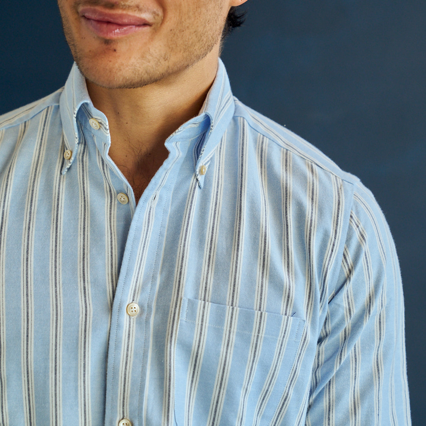 J. Mueser bespoke shirting is cut by hand from a personal pattern, drafted specifically for you and refined through fitting. Each shirt is made in Italy, sewn with single-needle stitching and finished with hand-attached collars and cuffs, allowing for subtle shaping and long-term comfort.