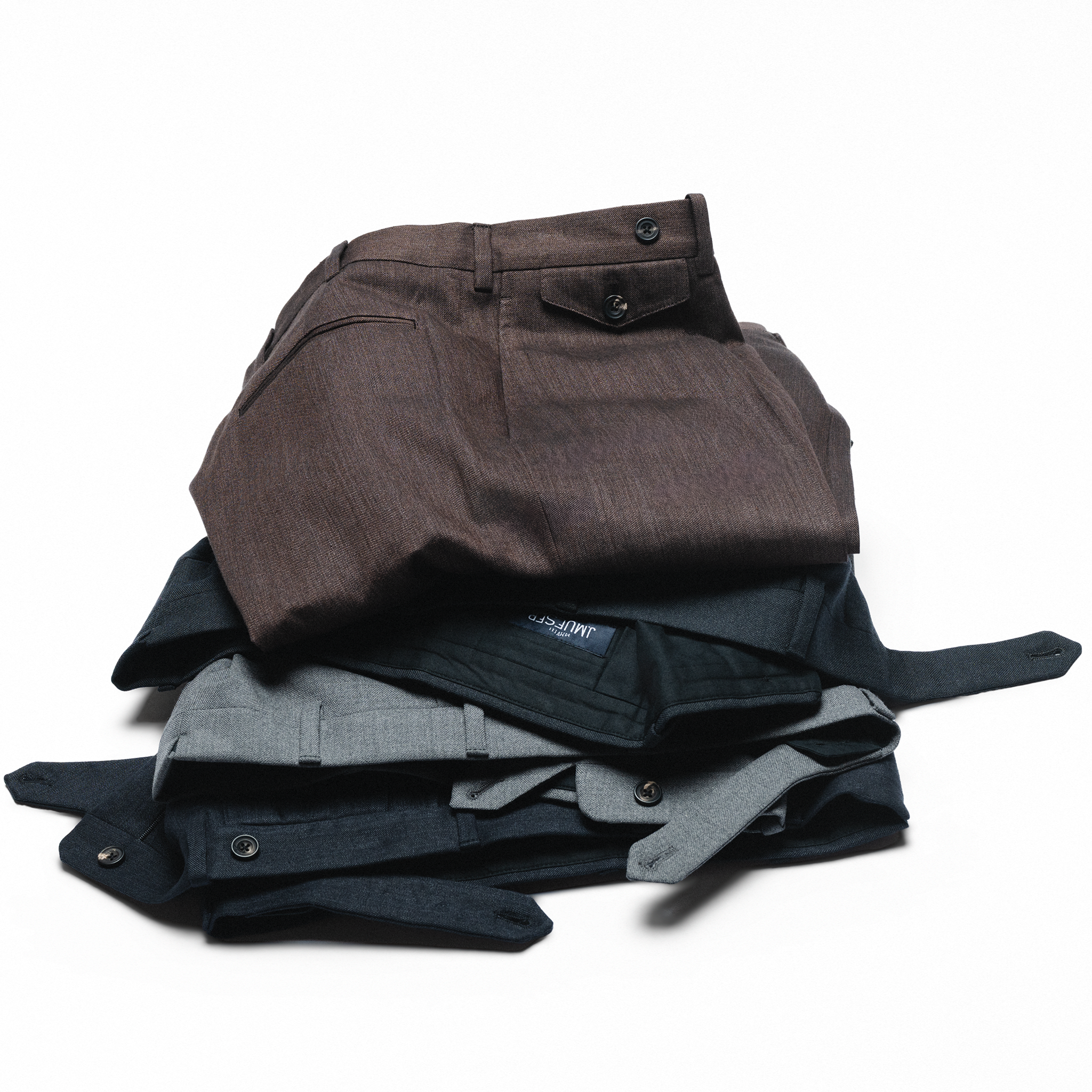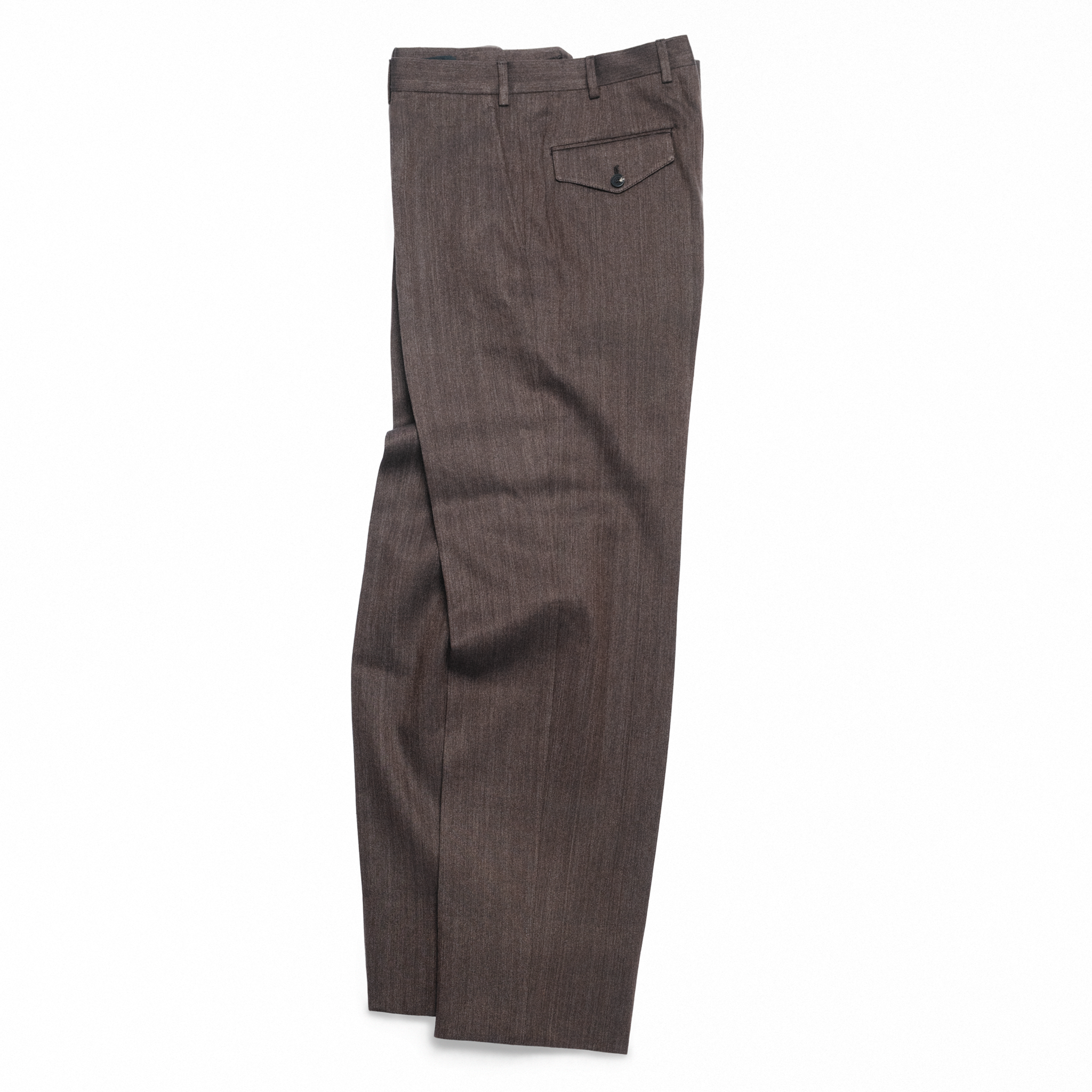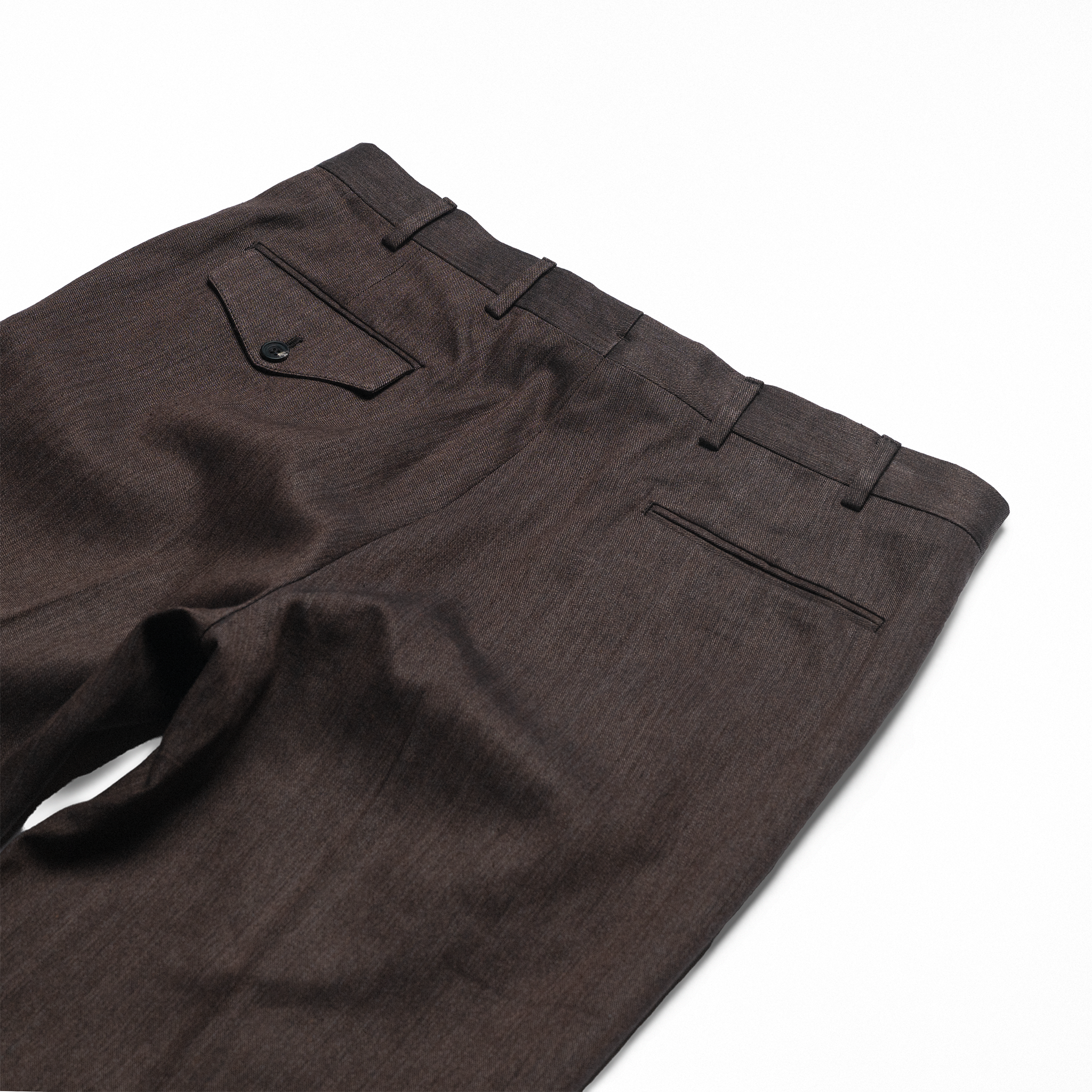 Our Waverly trouser is handmade at our sartoria in Naples, Italy and has a high rise and a subtle taper, with an extended waistband for a clean look with or without a belt. Cut in a brown heathered linen and cotton twill, it's breathable and lightweight and perfectly matched to any of our sport coats.