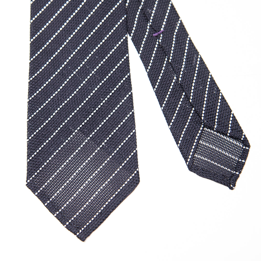 Navy Striped Grenadine Silk Tie